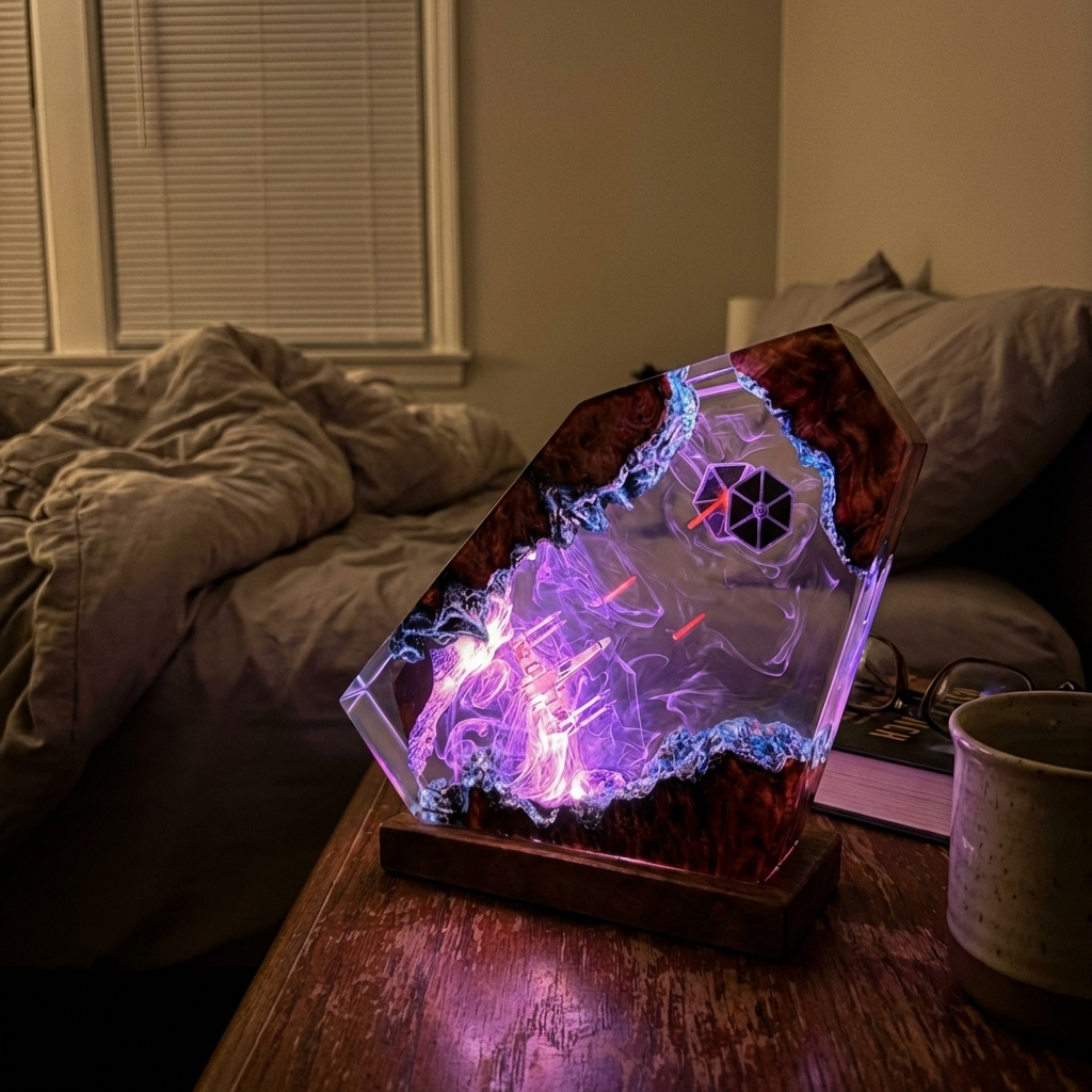 To keep your lamp looking its best, simply wipe it with a soft, dry cloth. We recommend keeping it out of direct sunlight for extended periods, as UV exposure can cause the resin to yellow over time. If the wood base ever appears dry, you can easily restore its luster with a small amount of light furniture oil.